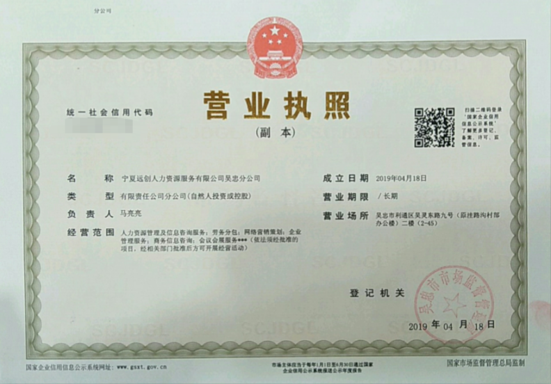 恭喜寧夏省級公司吳忠分公司注冊成立|